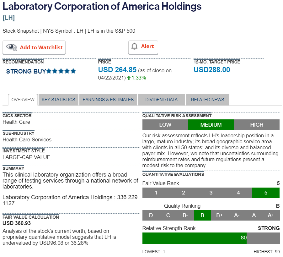 Stock of the Week - LH - Laboratory Corporation of America Holdings - 12-month target price - Health Care Services