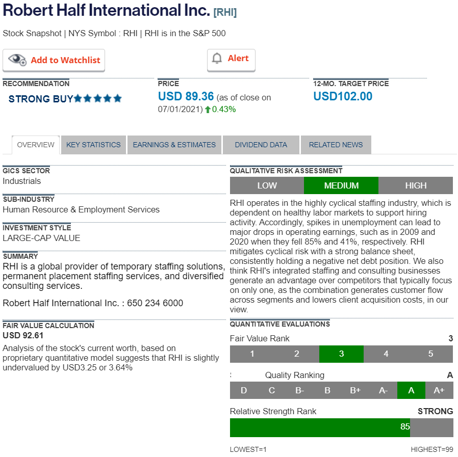 Stock of the Week - Robert Half International Inc - 12-month target price