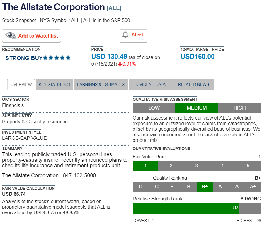 Stock of the Week - The Allstate Corporation - 12-month target price