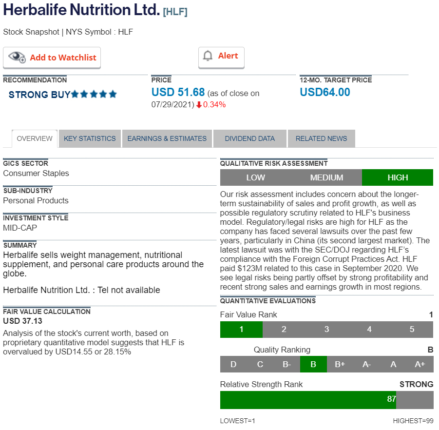 Stock of the Week - Herbalife Nutrition Ltd - 12-month target price