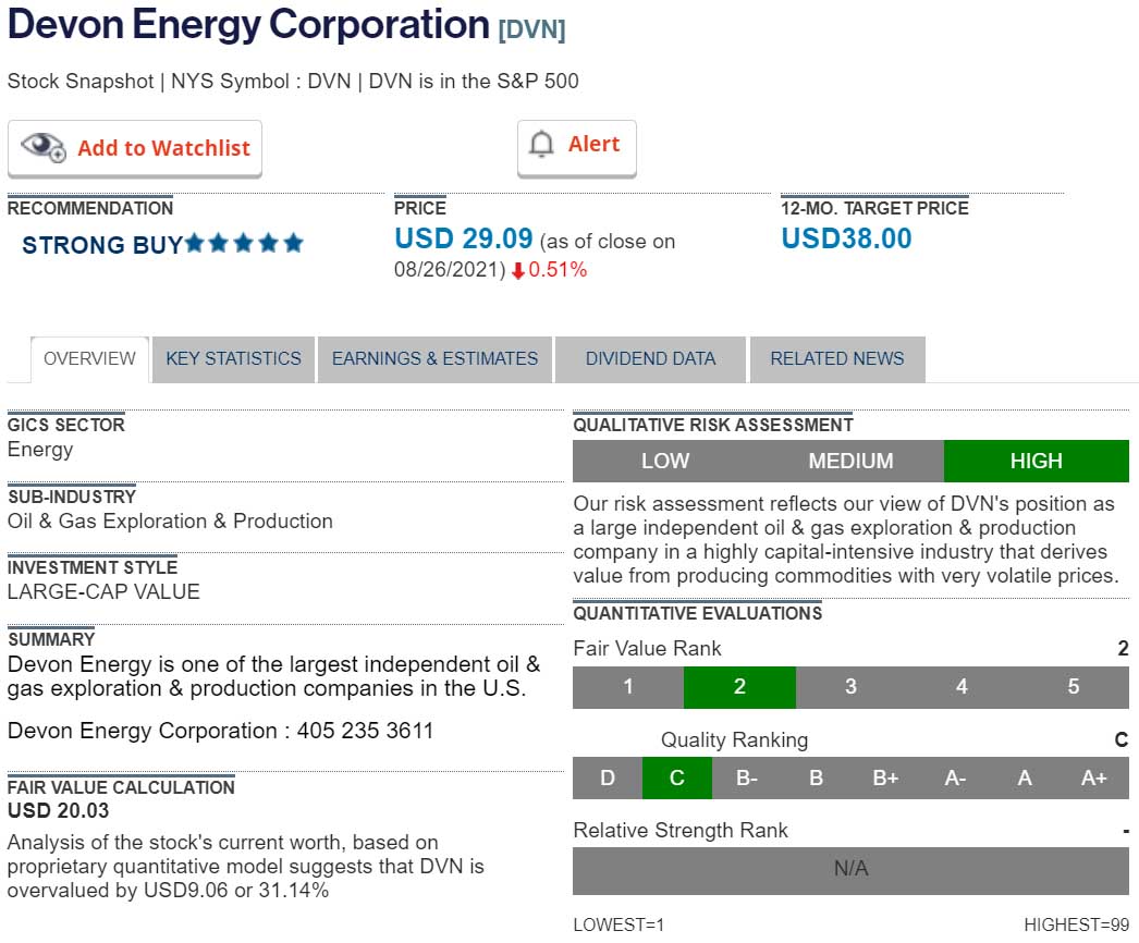 Stock of the Week - Devon Energy Corporation - 12-month target price