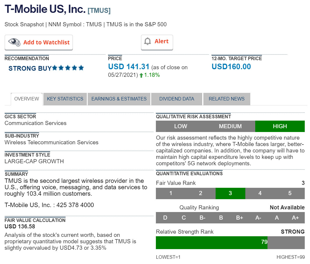 Stock of the Week - TMUS - T-Mobile US, Inc. - 12-month target price