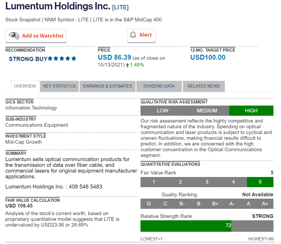 Stock of the Week - Lumentum Holdings Inc - 12-month target price