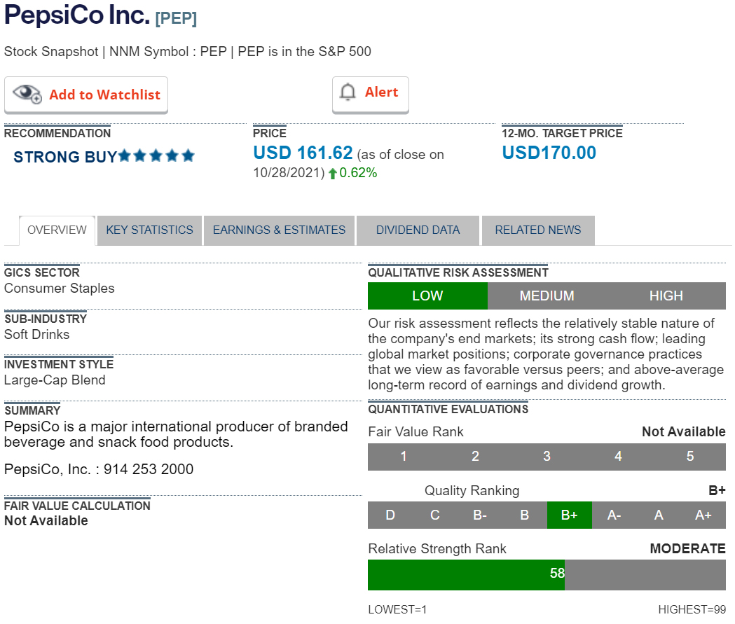 Stock of the Week - PepsiCo Inc - 12-month target price